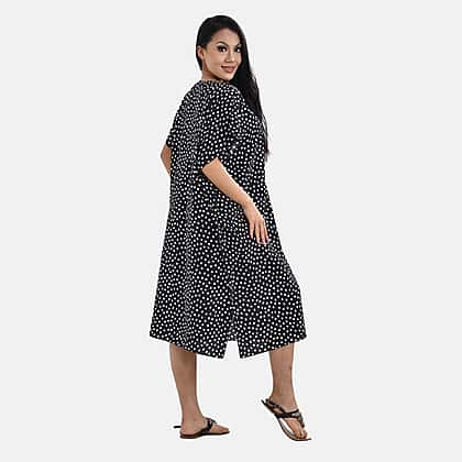Closeout Deal 100% Viscose Dot Printed Maxi Kaftan Dress (One Size, 8-20) - Polka
