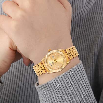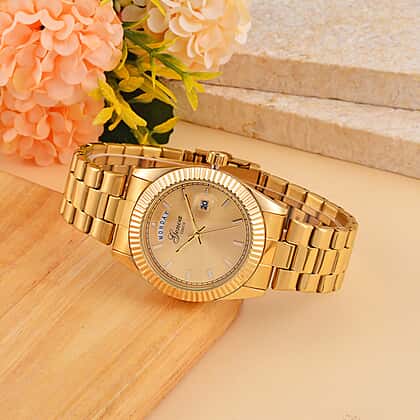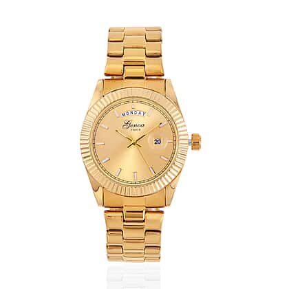 GENOA TIME Day Date 3ATM WR Gold Dial Yellow Gold Watch