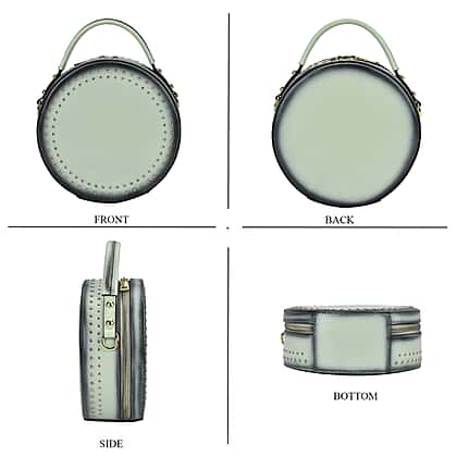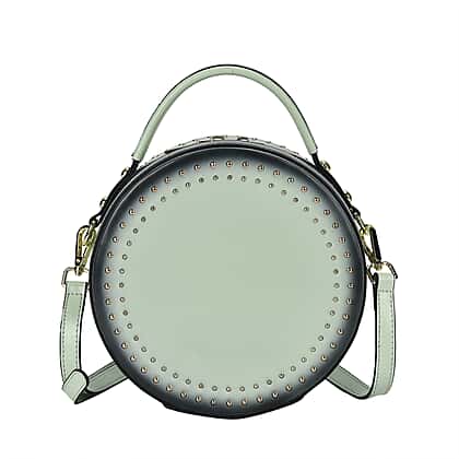 Genuine Leather Stylish Studded Circle Purse With Top Handle & Adjustable Strap - Mint Green