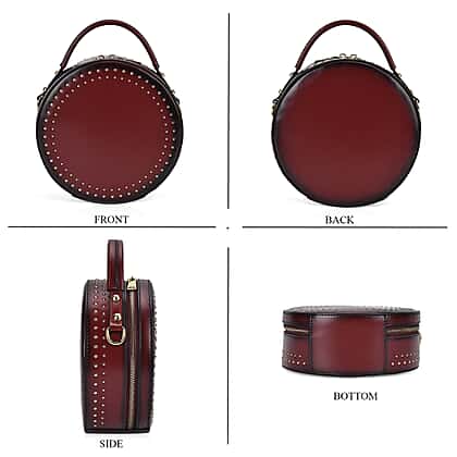 Genuine Leather Stylish Studded Circle Purse With Top Handle & Adjustable Strap - Wint