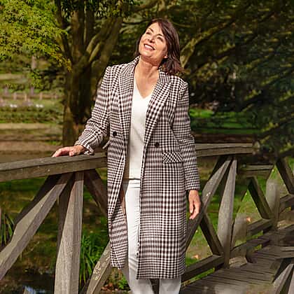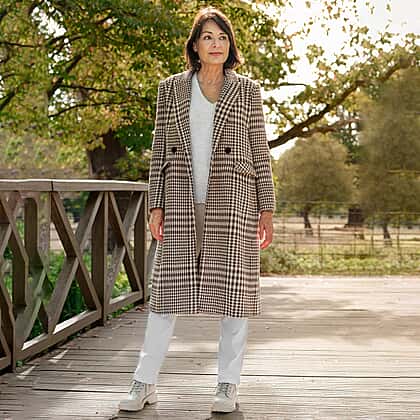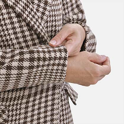 Houndstooth Pattern Longline Coat (Size S-12) - Black & White