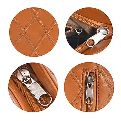 Sheepskin Leather Solid Shoulder Bag (Size 25x24x5 cm) - Tan & Black