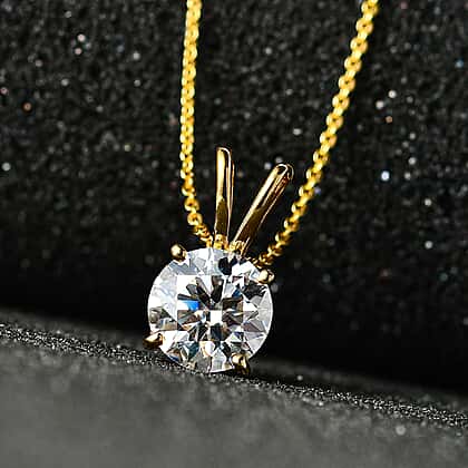Moissanite Solitaire Pendant with Chain (Size 20) in 18K Vermeil Yellow Gold Plated Sterling Silver 1.10 Ct.