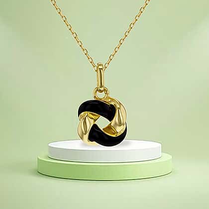 Black Enamel Knot Necklace in Sterling Silver Yellow Gold Plated