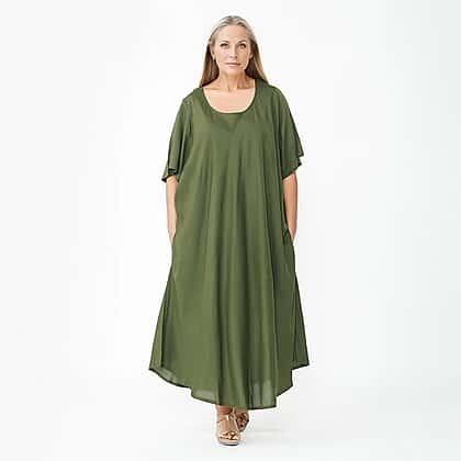 Slip into effortless style with the Tamsy Umbrella Style Dress, perfect for a day out or lounging at home. Designed with a relaxed, oversized fit, this dress ensures maximum comfort, allowing easy movement throughout your day. The simple round neckline and wide, airy short sleeves add to the laid-back feel, while the flowing silhouette flatters all body shapes. With side pockets for added practicality, this dress blends function with elegance. Falling at a versatile midi length, it’s a casual yet stylish option for warm weather, keeping you cool and comfortable.
