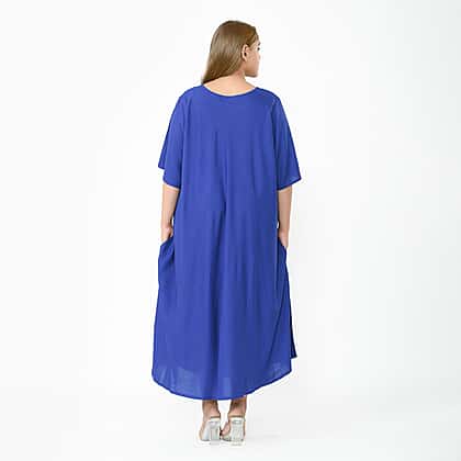 Slip into effortless style with the Tamsy Umbrella Style Dress, perfect for a day out or lounging at home. Designed with a relaxed, oversized fit, this dress ensures maximum comfort, allowing easy movement throughout your day. The simple round neckline and wide, airy short sleeves add to the laid-back feel, while the flowing silhouette flatters all body shapes. With side pockets for added practicality, this dress blends function with elegance. Falling at a versatile midi length, it’s a casual yet stylish option for warm weather, keeping you cool and comfortable.