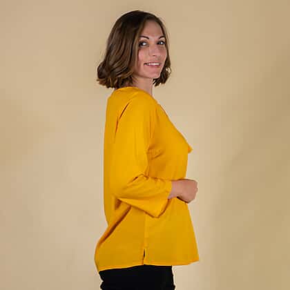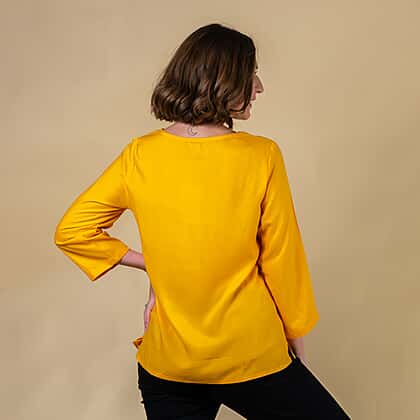 The minimalistic embroidered lace detailing on the shoulders creates an on-trend edge. The attractive tassels at the neckline offer a subtle look of style with functionality. Made from 100% viscose fabric for all-day comfort. The eye-catching yellow colour lets you team this women's top with a variety of bottoms for an eye-catching appeal.