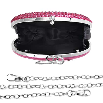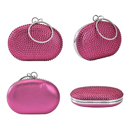 Small Elegant Crystal Studded Wristlet Clutch - Fushia