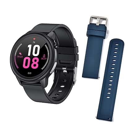 Super Find - Soul Smart Health Tracker Watch (1.3 inch HD Display) with 2 Straps Includes ECG, Body Temp, Respiration Rate and Sleep Monitoring Functions - Black and Blue