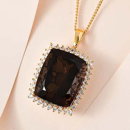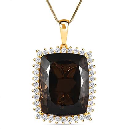 Smoky Quartz & Natural Zircon Pendant with Chain (Size-20) in 18K Yellow Gold Vermeil Plated Sterling Silver 64.60 Ct, Silver Wt 13.88 GM