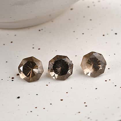Set of 3 Smoky Quartz Loose Gemstone in Octillion Cut (10 mm)