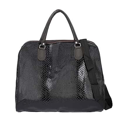Snake Skin Pattern Tote Bag with Zipper Closure and Detachable Shoulder Strap (Size 43x23x39 Cm) - Black