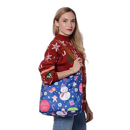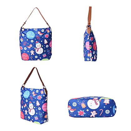 Snowman Print Tote Bag (34x14x37cm) - Teal
