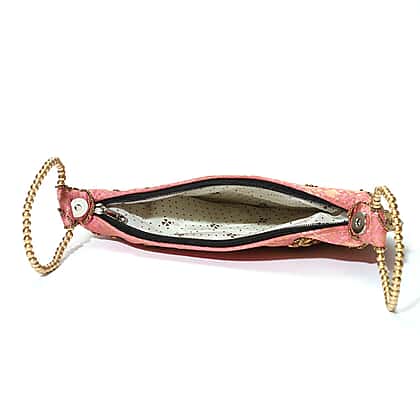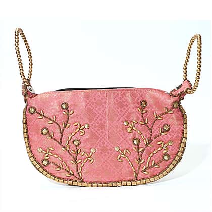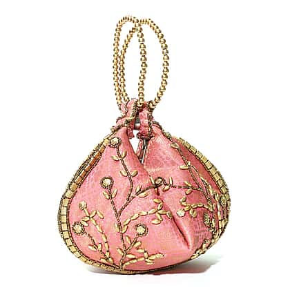 Add a playful charm to your festive wardrobe with this beautifully crafted pink potli bag. Hand embroidery and soft-toned embellishments give it a cheerful, feminine appeal. Designed with thoughtful functionality, it features two handles and a dual closure system—zip and magnetic—for ease and security. At 22x15 cm, it’s roomy enough to carry your basics for parties, weddings, or family occasions. A fusion of practical storage and artistic flair, this pink potli brings a lively pop of colour to your ethnic or fusion attire.