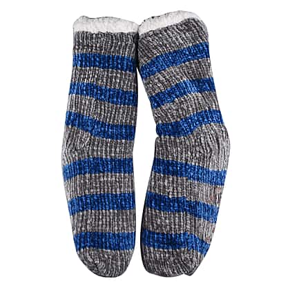 Elizabeth Rose Chenille Stripes Chunky Socks - Blue and Grey