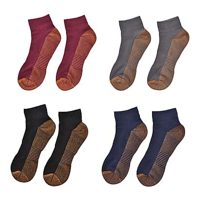 Set of 4 Pairs Antibacterial Copper Infused Compression Socks (Size 9-13) - Red