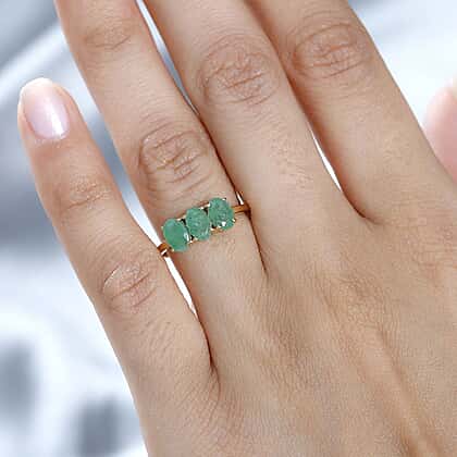 Adorned with three faceted Socoto emeralds, this Socoto Emerald 3 Stone Ring is a jubilant ode to life's significant moments. The 18K yellow gold vermeil radiates a festive warmth, akin to the inner glow of a woman who celebrates every milestone with grace and gusto. This piece isn't just jewellery; it's a commemoration of the journey and the joyous victories along the way.