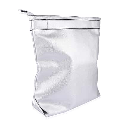 Sofia Metallic Fold Over Clutch Bag (Size 32x25x12 Cm) - Silver