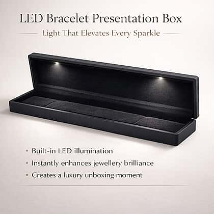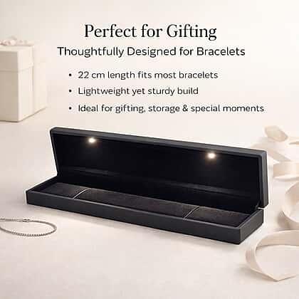 Showcase your cherished bracelets with this elegant bracelet box featuring built-in LED lights. Crafted from durable materials, the sleek black exterior adds sophistication, while the soft velvet interior protects your jewellery from scratches. The integrated LED lights illuminate the bracelet beautifully, enhancing its sparkle and making it perfect for gifting or storing treasured pieces. Measuring 22 cm in length, it’s designed to fit a variety of bracelets. Lightweight yet sturdy, this box combines functionality with style, creating a memorable unboxing experience for special occasions or everyday storage.