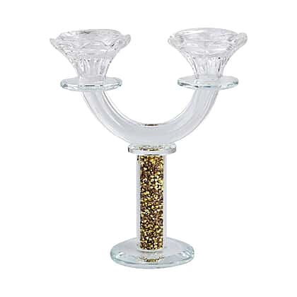 Sparkling 2 Arms Crystal Candle Holder - Gold