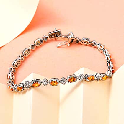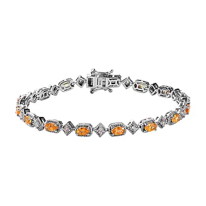 Touched with royalty, this stunning spessartine garnet and zircon bracelet is all you need for a perfect look. This bracelet features oval and round gemstones secured in a prong setting, giving it a bright sparkle and shine. It is made from 925 sterling silver with a platinum overlay and features millgrain detailing on the frame to provide it with an aesthetic touch. You can wear this bracelet for your big day or gift it to your loved ones this festive season.