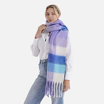 - Maisi Multicoloured Soft Checkered Tassel Scarf (190 x 40 cm) - Purple