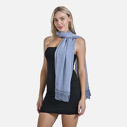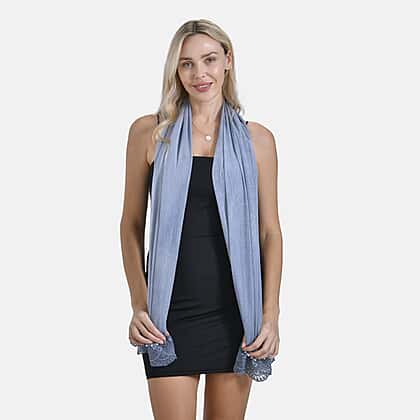 Closeout Deal New Arrival Lace Design on Edges Scarf (Size - One Size) - Blue