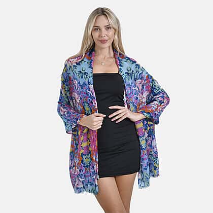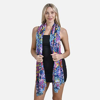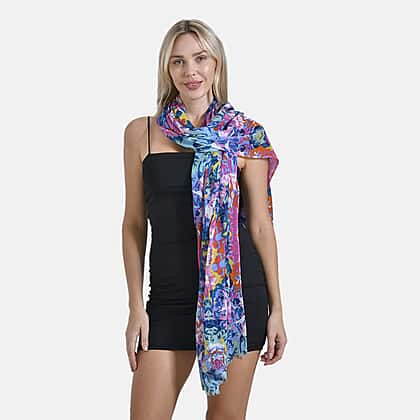 Mothers Day Gift Idea - La Marey 100% Merino Wool Whimsical Floral Pattern Scarf (Size 180x65 cm) - Multi Color