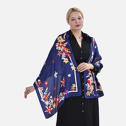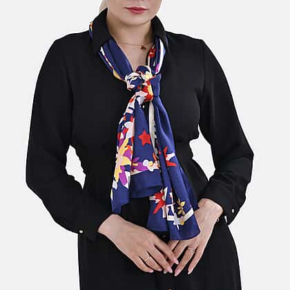Wrap yourself in elegance with the La Marey Mulberry Silk Flower Scarf, designed to bring a touch of luxury to your wardrobe. This vibrant scarf features a captivating floral print on a rich navy background, with colourful flowers like daisies and stars beautifully arranged in a playful, artistic pattern. Crafted from the finest mulberry silk, this scarf feels incredibly soft against the skin. Use it as a headband or tie it onto your handbag to create a versatile style with one scarf, adding a chic touch to your everyday look.