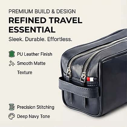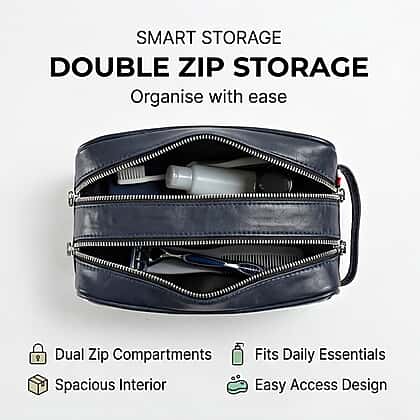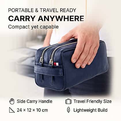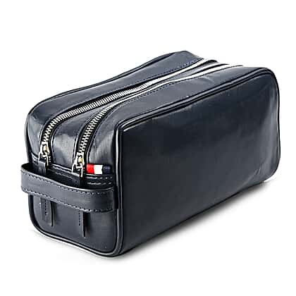 VALISSIERE Mens Faux-Leather Travel Cosmetic - Toiletry Bag - Navy