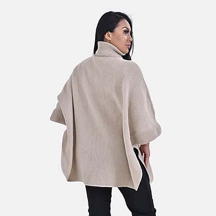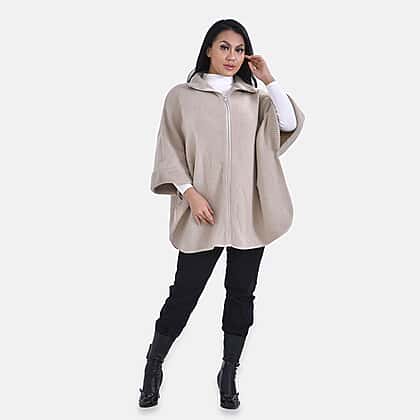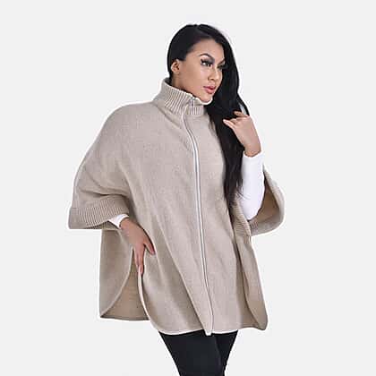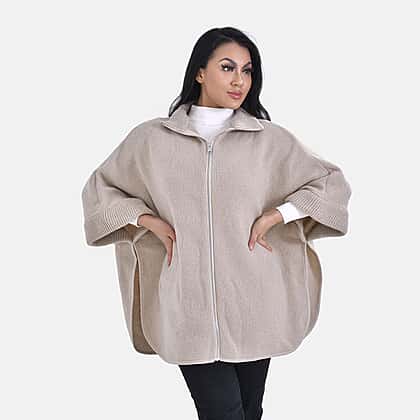 Stand Collar Zipper Closure Winter Poncho (One Size) - Oatmeal