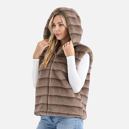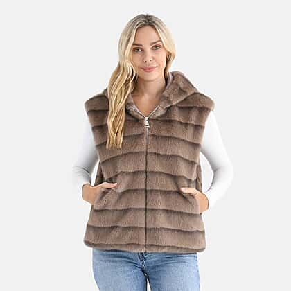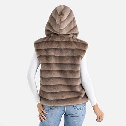 La Marey Faux Fur Hoodie Gilet (Size 8 to 16) - Light Brown