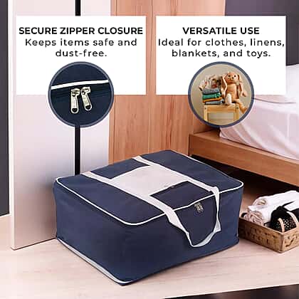 Keep your home tidy and organised with this set of 5 non-woven storage bags with front pocket. Designed to maximise space and simplify storage, these bags are made from durable, non-woven polyester, ensuring long-lasting use. Each bag comes with a clear front window, allowing you to easily identify the contents without unzipping. The strong handles make them easy to carry, while the zip closure keeps your items secure and dust-free. Whether you're storing clothes, bedding, or seasonal items, these spacious bags (51x43x22 cm) are perfect for decluttering your space. Ideal for use in bedrooms, wardrobes, or even the loft.