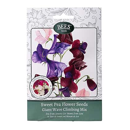 BEES Sweet Pea Giant Wave Mixture is a premium climbing flower seed blend designed to bring vibrant colour and fragrance to your garden. Featuring a stunning mix of maroon, purple, pink and bi-colour blooms, this variety produces large, ruffled flowers on strong climbing stems. Perfect for trellises, fences and garden arches, it creates a striking vertical display throughout the flowering season. Sow from January for beautiful blooms from June onwards. Easy to grow and ideal for borders, containers or cottage-style gardens, this sweet pea mix attracts pollinators while filling outdoor spaces with classic summer scent and timeless floral charm.