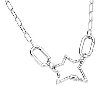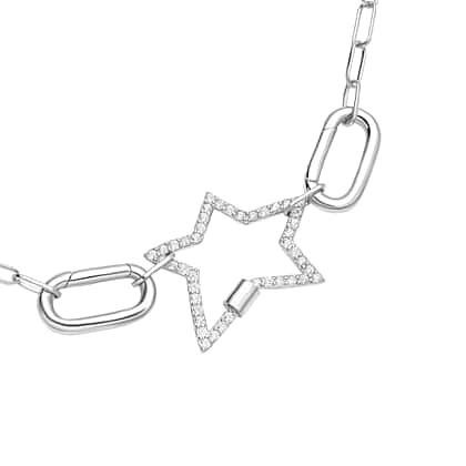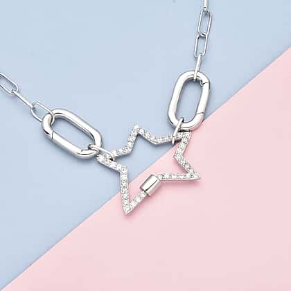 Set a trend with our Star-shaped Paper Clip chain necklace with 3 Carabiner locks in 925 Sterling silver by styling it differently every day. The centre star-shaped pendant has cubic zirconia studded in high finish platinum plating along with 2 carabiner links to attach your favourite charms. This will be a noticeable 18-inch necklace in paper clip style for you as it is crafted with extra care and perfection, thus, makes it the best choice for gifting ideas for men and women.