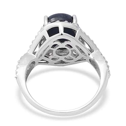 8.71 Ct Star Sapphire and Zircon Halo Ring in Rhodium Plated Silver