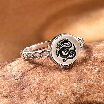Dragon Design Enamelled Link Chain Ring in Sterling Silver