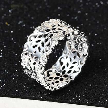 Sterling Silver Filigree Wide Band Ring, Silver wt 3.82 Gms