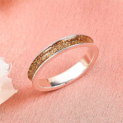 Golden Glitter Enamelled Band Ring in Sterling Silver