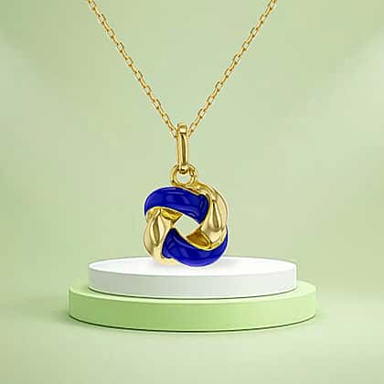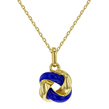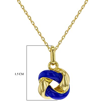 Blue Enamel Knot Necklace in Sterling Silver Yellow Gold Plated