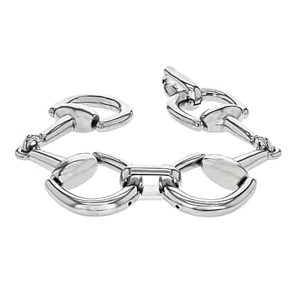 Sterling Silver Rhodium Plated Stirrup Link Bracelet 8 Inch