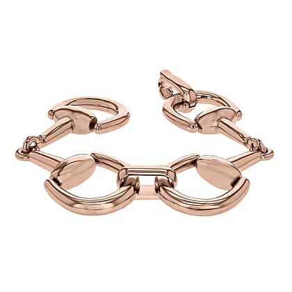 Sterling Silver Rose Gold Plated Stirrup Link Bracelet 8 Inch