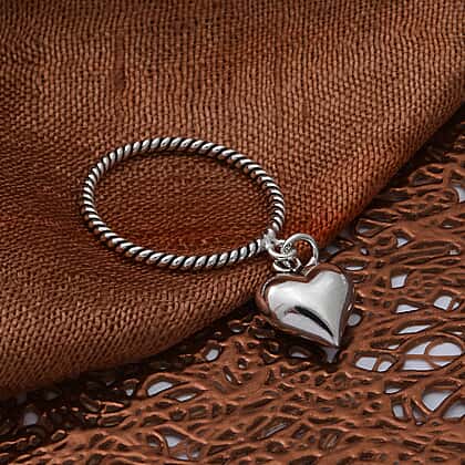 Sterling Silver Twisted Heart Charm Ring