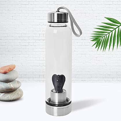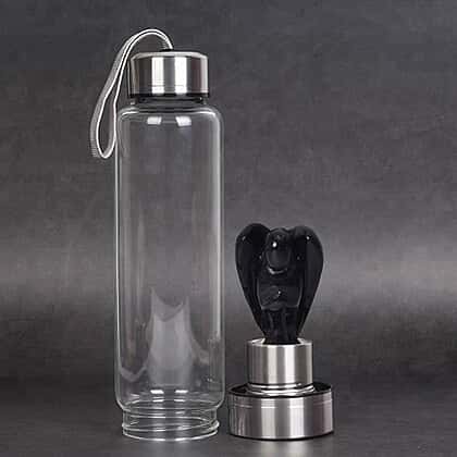 550 ML Black Obsidian Angel Figurine Crystal Elixir Water Bottle with Stainless Steel Cap (Size 24.5x6.5 Cm)