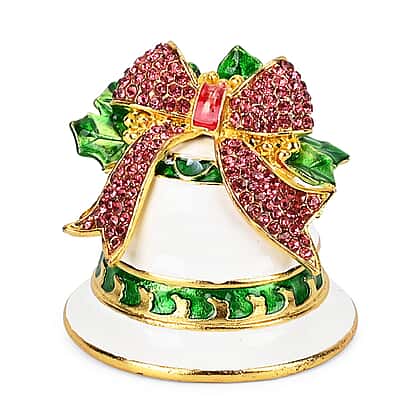 Christmas Bell Hand Painted Trinket Storage Box Enamelled With Sparkling Crystals - Green & Red