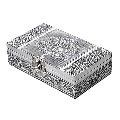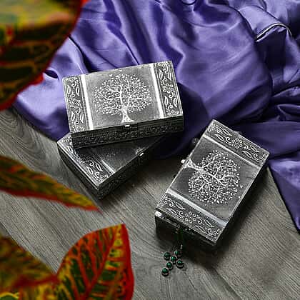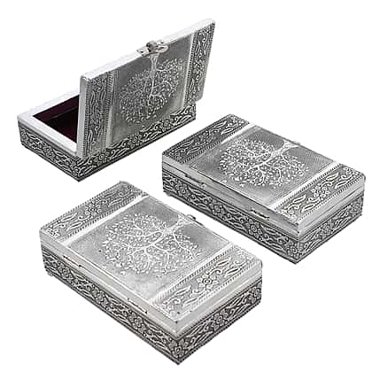 DOD - Set of 3 Handcrafted Aluminium Bird on Tree Top Embossed Storage Box (Size 16x10x4 cm)