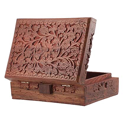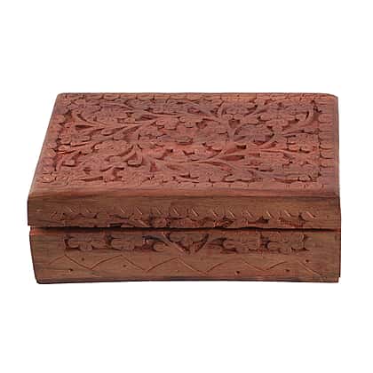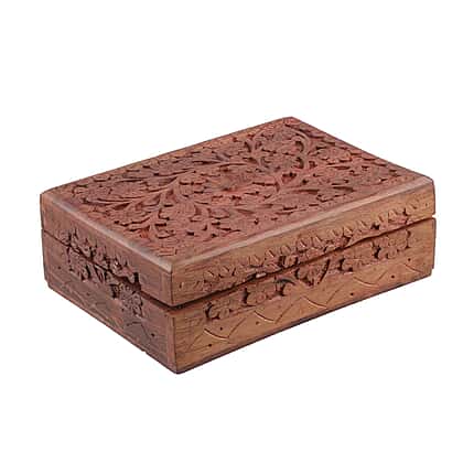 Hand Carved Tree Pattern Mango Wood Storage Box