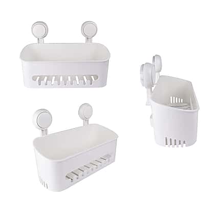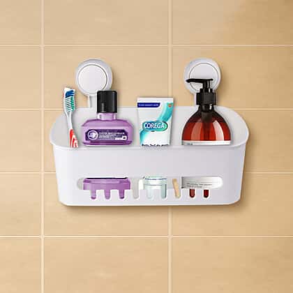Homesmart Wall Mounting Suction Basket- White for Hair Brush, Tooth Brush, Face Wash and Kitchen Utensils