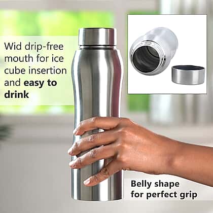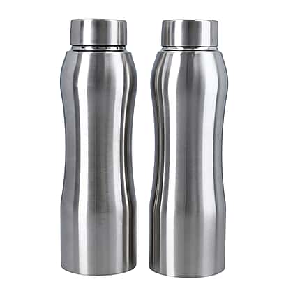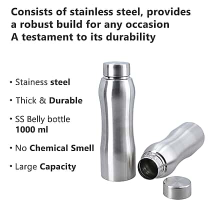 Set of 2 - Steel Belly Water Bottle 1000ml (Size 7.8 (diameter) x 26 CM) - Silver