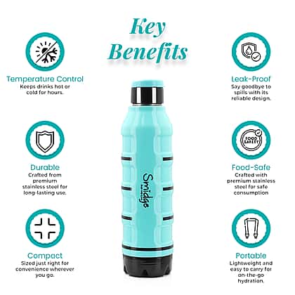 Set of 2 Wave Warm - Cold Insulated Stainless Steel Bottle Leak Proof - Blue 700 ML